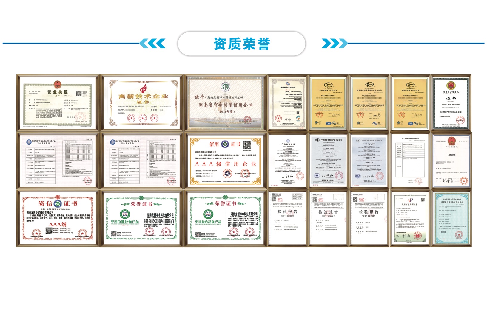 龍新凈水秉承著品質是企業生存之道,服務是企業發(fā)展之根的理念,先后通過ISO管理體系認證、五星售后服務認證、高新技術企業認證、衛生許可批件和眾多榮譽證書及近百項國家專利技術。